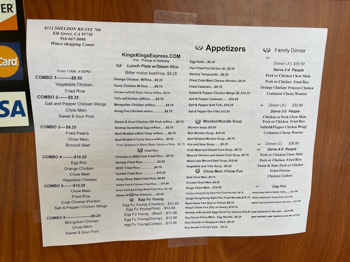 King's Express Chinese Restaurant Menu
