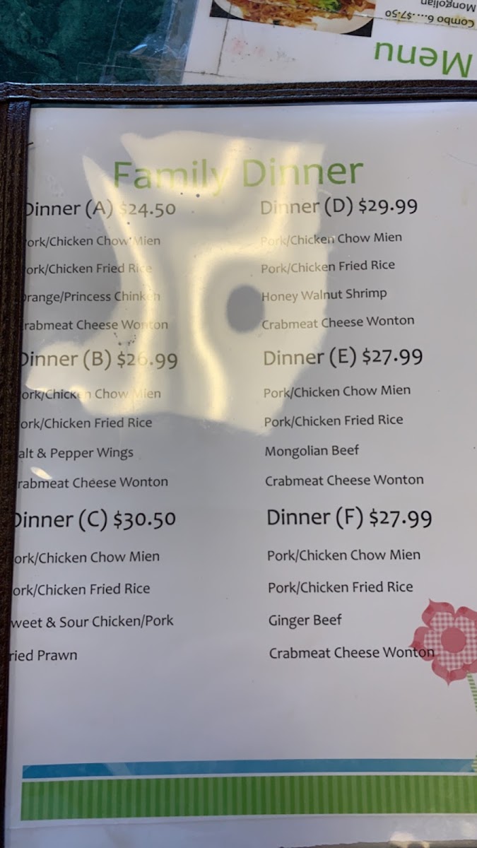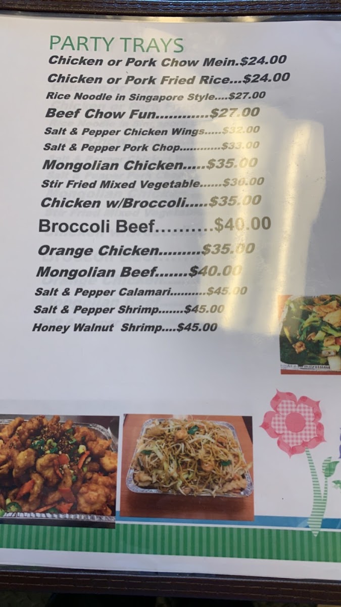 This menu is suitable for casual dining occasions, offering hot, freshly prepared dishes that can serve as quick meals or for sharing. It is designed to cater to those seeking a range of classic Chinese flavors without a focus on formal dining.